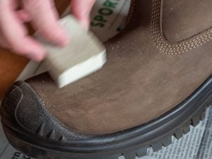 Tot slot gebruik je de nubuck spray om een beschermende laag aan te brengen.